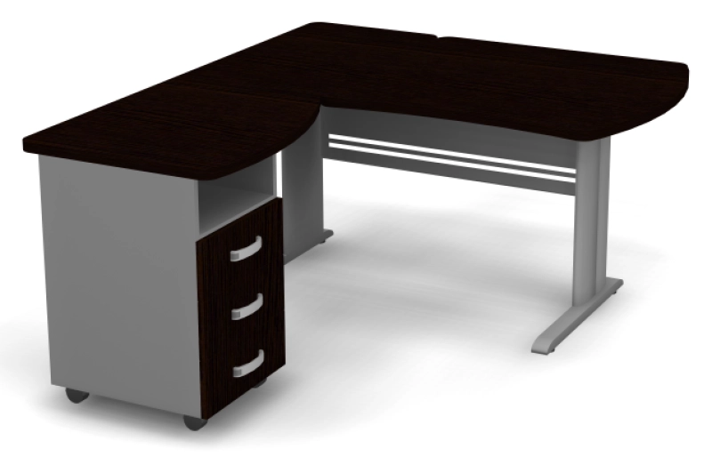 Угловое рабочее место на металлическом L-каркасе левое
