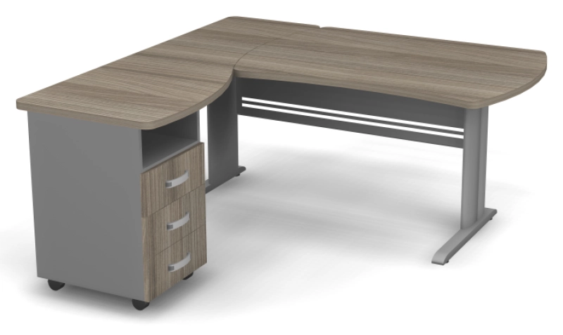 Угловое рабочее место на металлическом L-каркасе левое